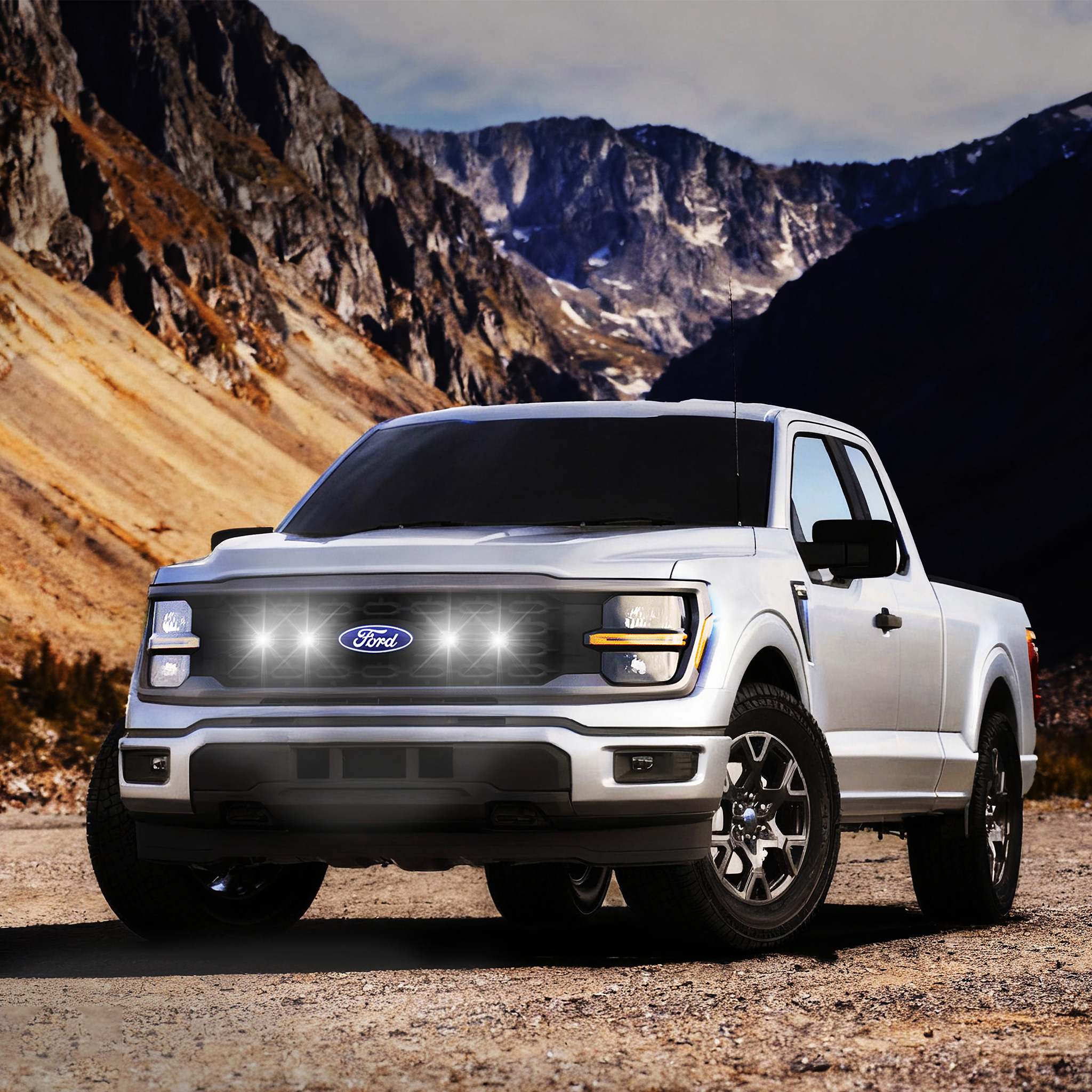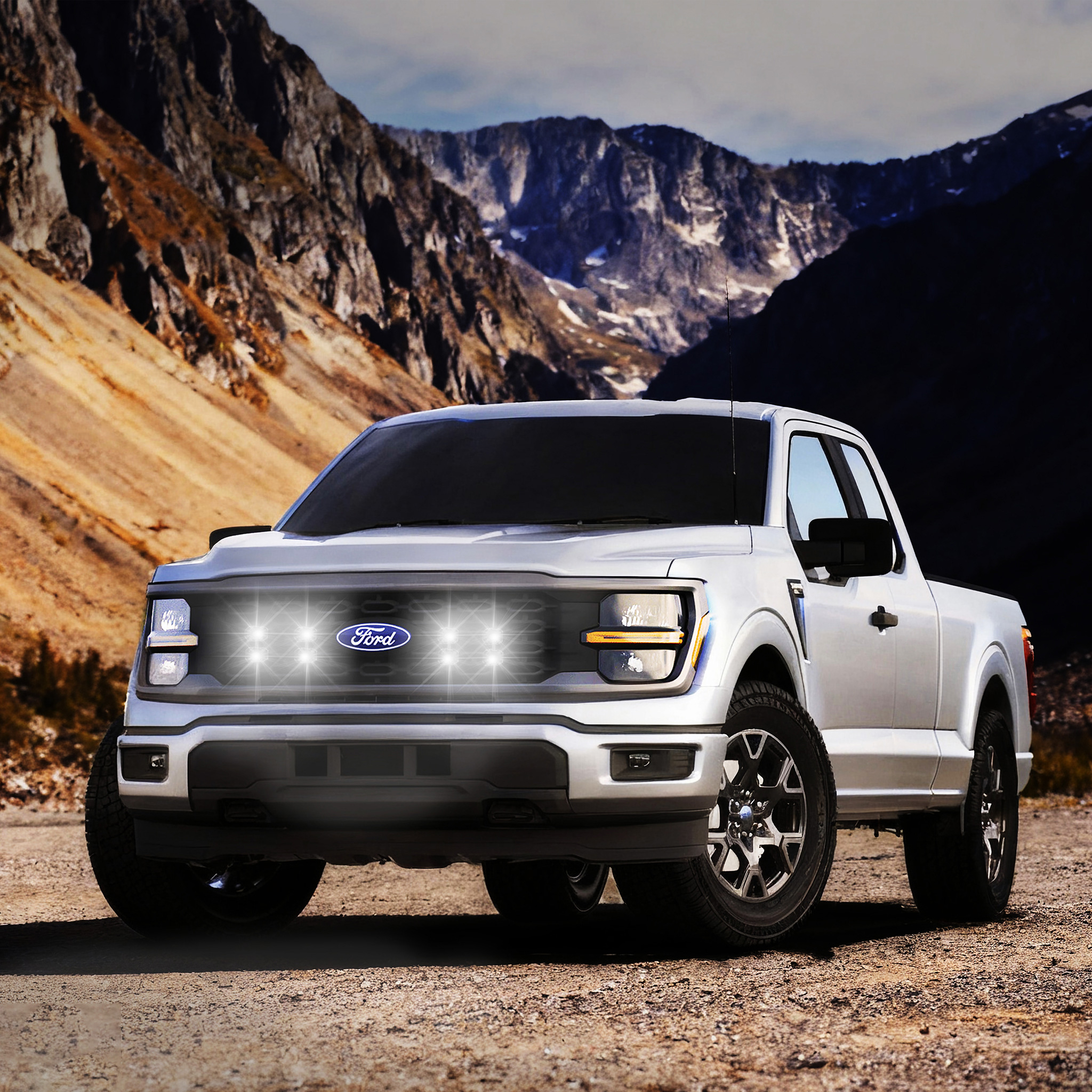 Tiny Monster Grille Kit for Ford F-150 STX, 2024-25 (4 Pods, Harness, Brackets)-41FE4