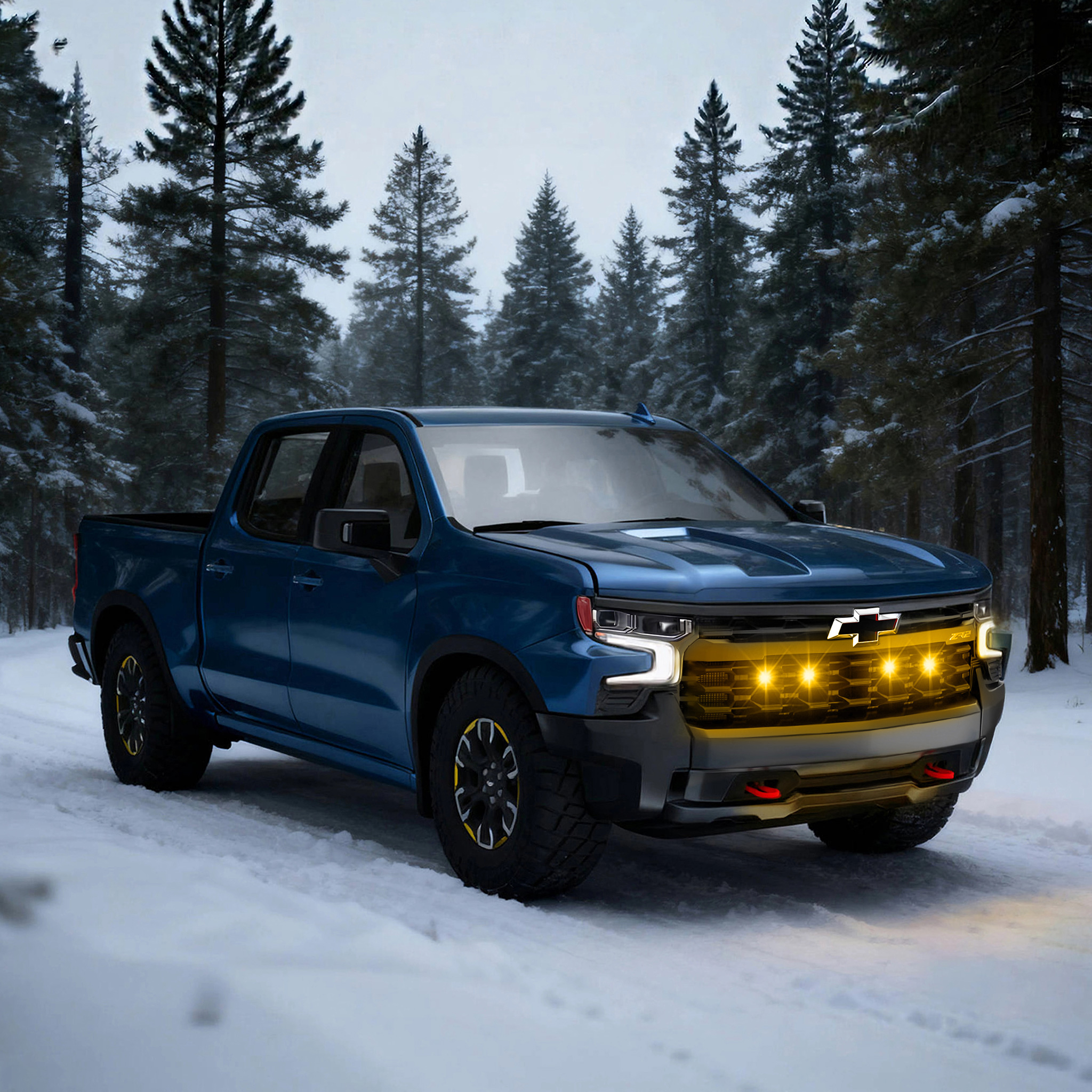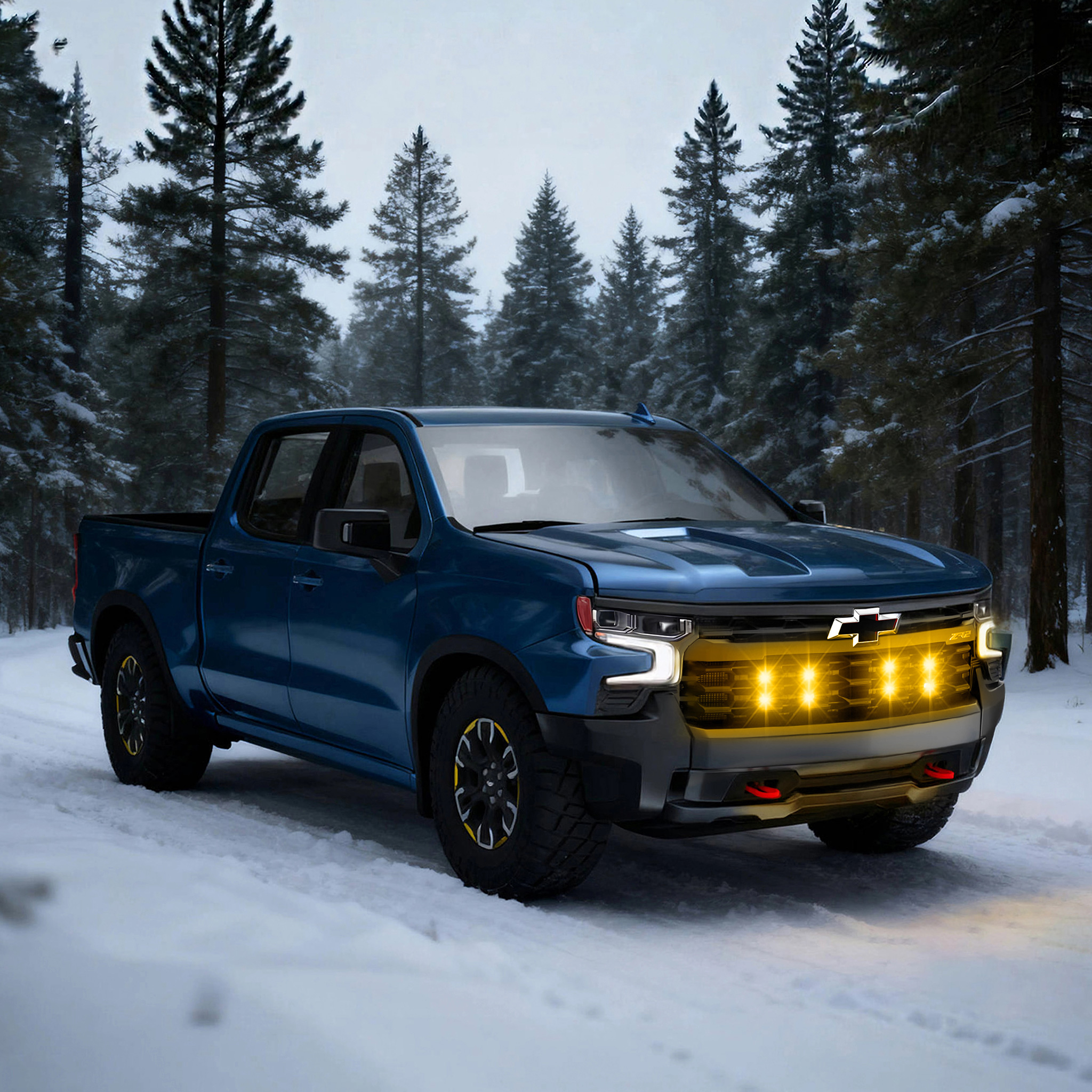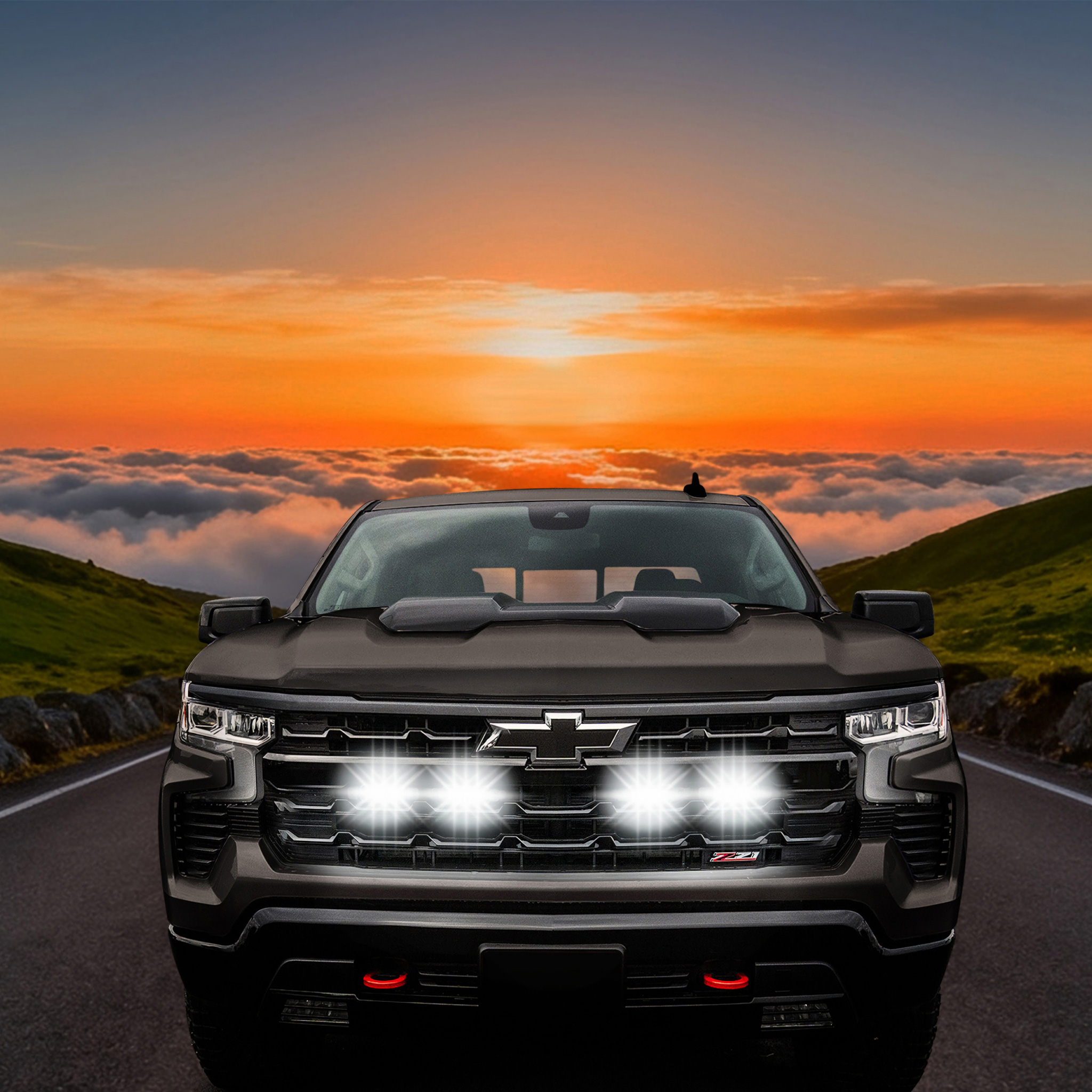 Tiny Monster Grille Kit for Chevrolet Silverado 1500 ZR2/ZR2 Bison, 2022-25 (4 Pods, Harness, Brackets)-42CB4