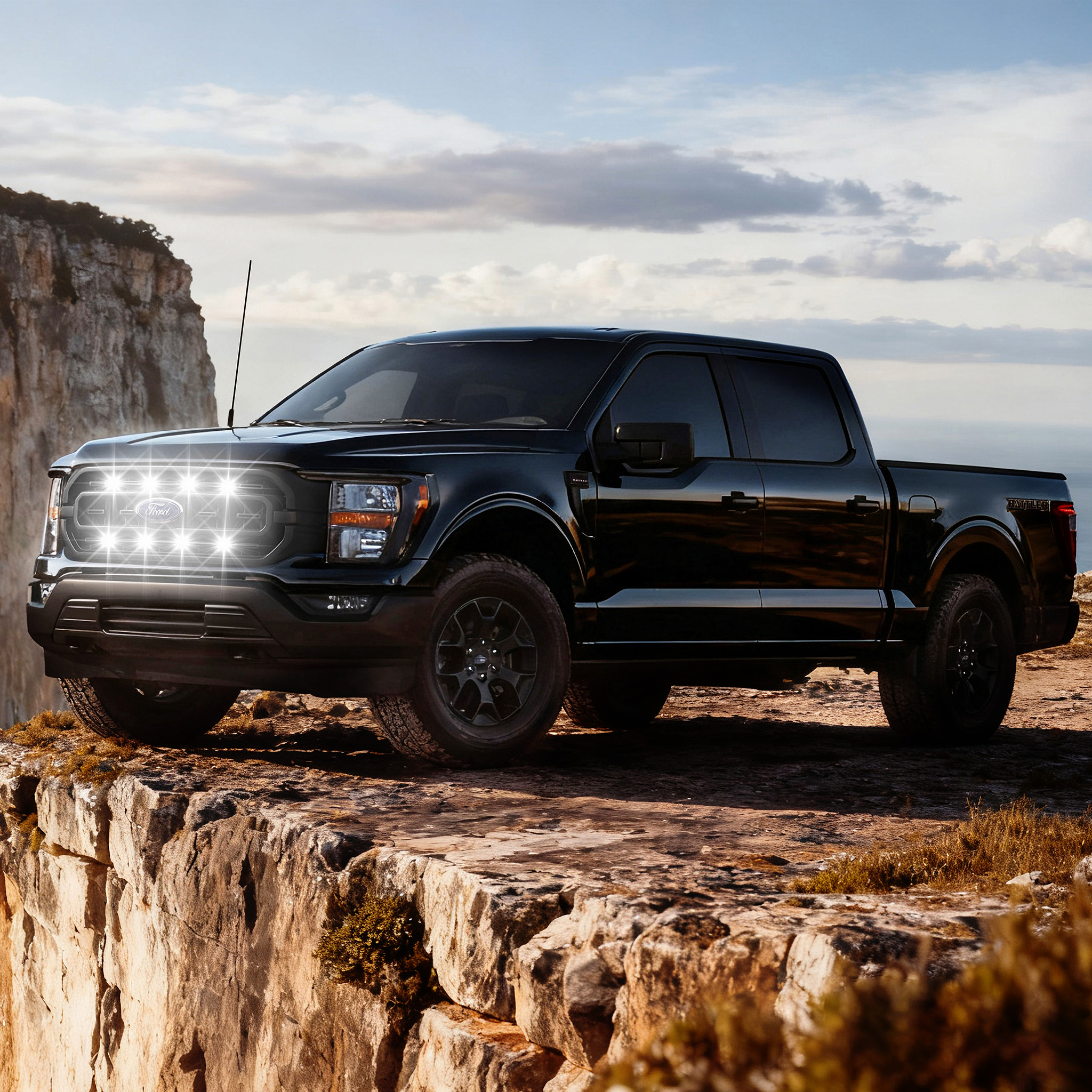 Tiny Monster Grille Kit for Ford F-150 Lariat/Lariat Sport, 2021-23 (4 Light Bars, Harness, Brackets)-61F24
