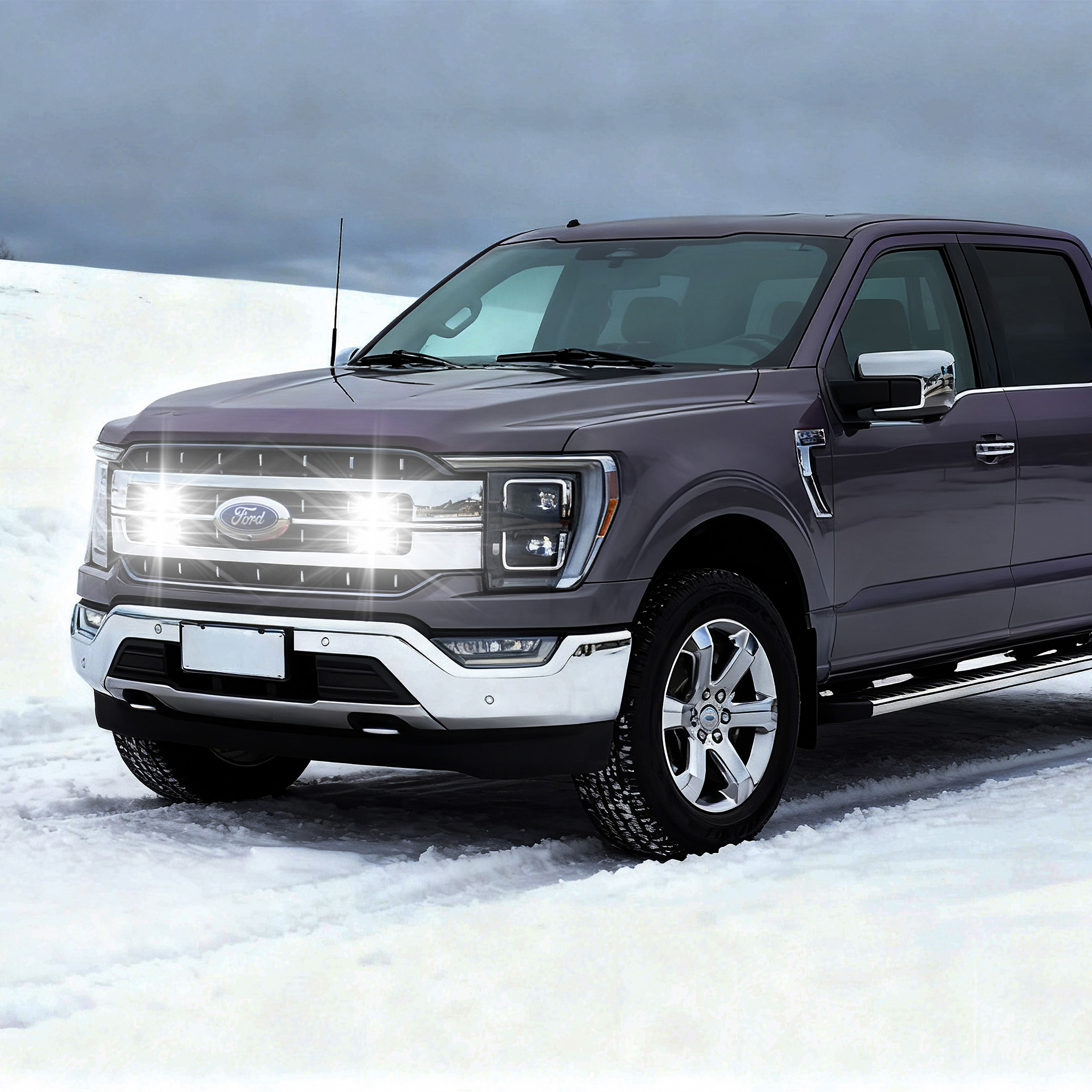 Tiny Monster Grille Kit for Ford F-150 XL/XLT, 2021-23 (4 Pods, Harness, Brackets)-42F14