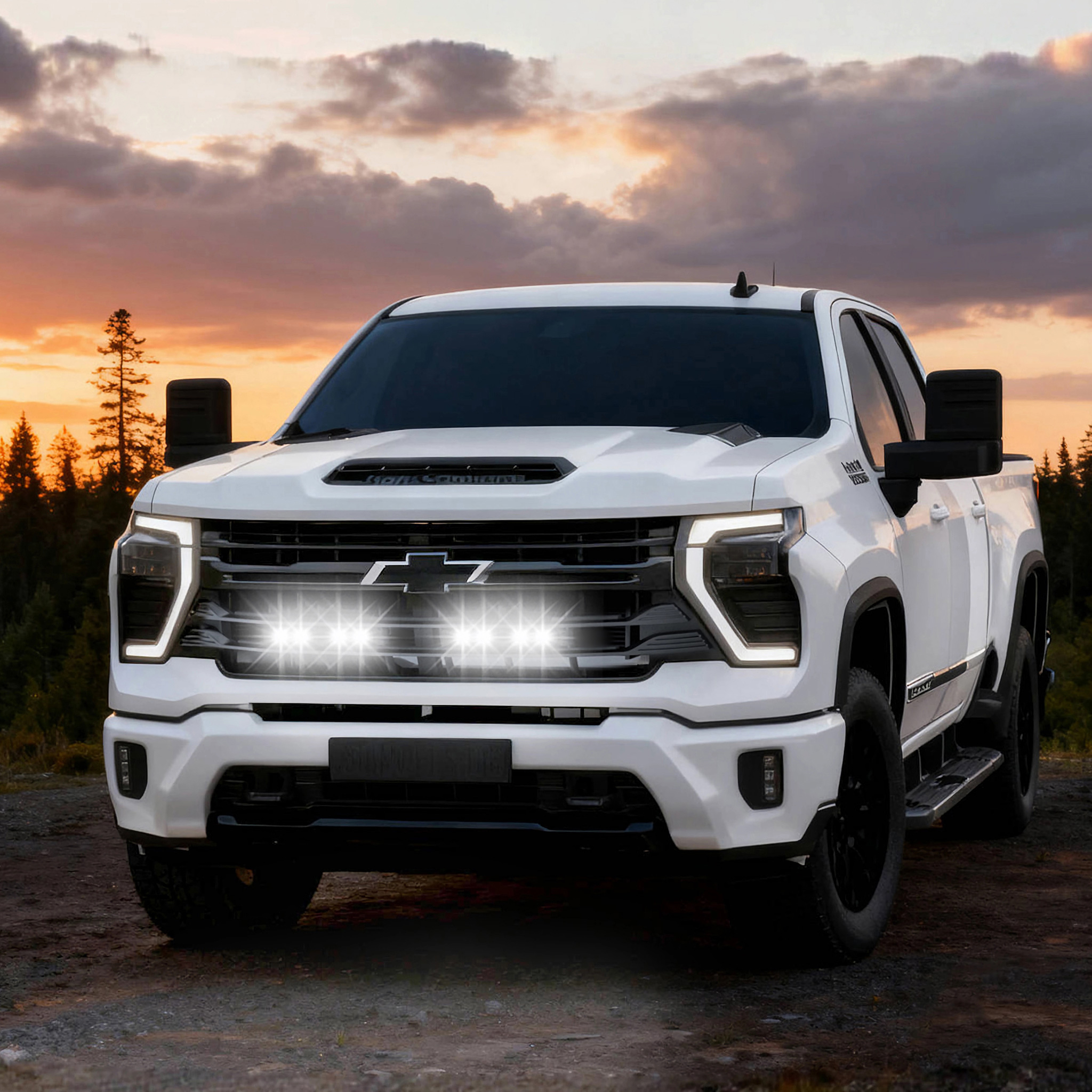 Tiny Monster Grille Kit for Chevrolet Silverado HD WT/LT/LTZ/High Country, 2025 (4 Light Bars, Harness, Brackets)-63CA4