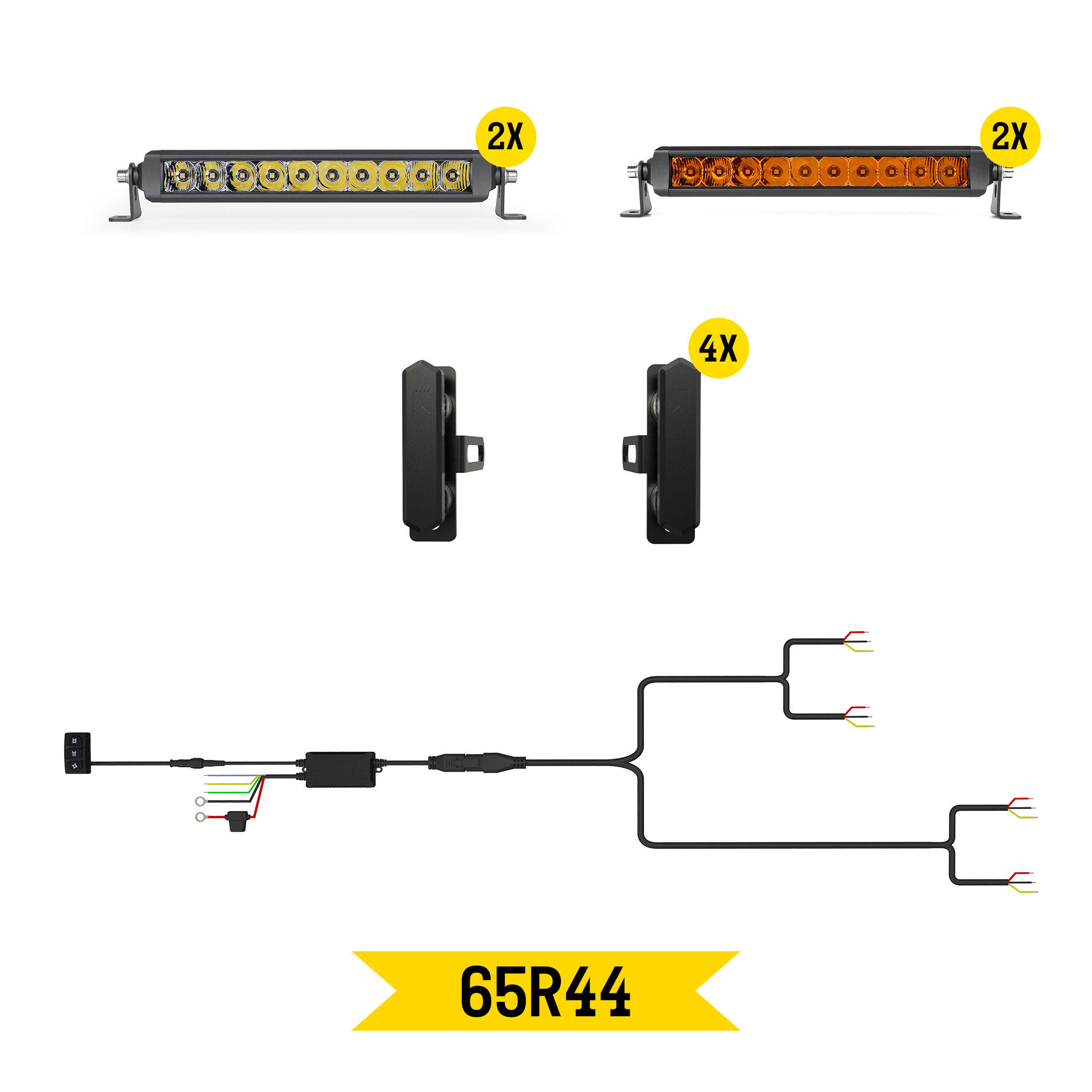 Tiny Monster Grille Kit for Honeycomb Style Grille, Universal (4 Light Bars, Harness, Brackets)-65R44
