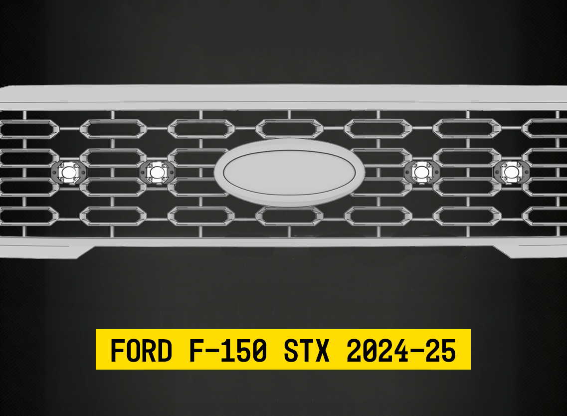 Tiny Monster Grille Kit for Ford F-150 STX, 2024-25 (4 Pods, Harness, Brackets)-41FE4