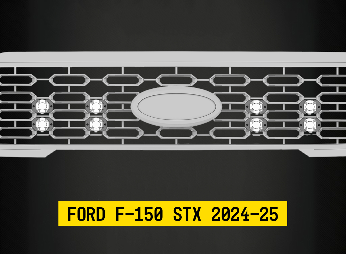Tiny Monster Grille Kit for Ford F-150 STX, 2024-25 (8 Pods, Harness, Brackets)-41FE8