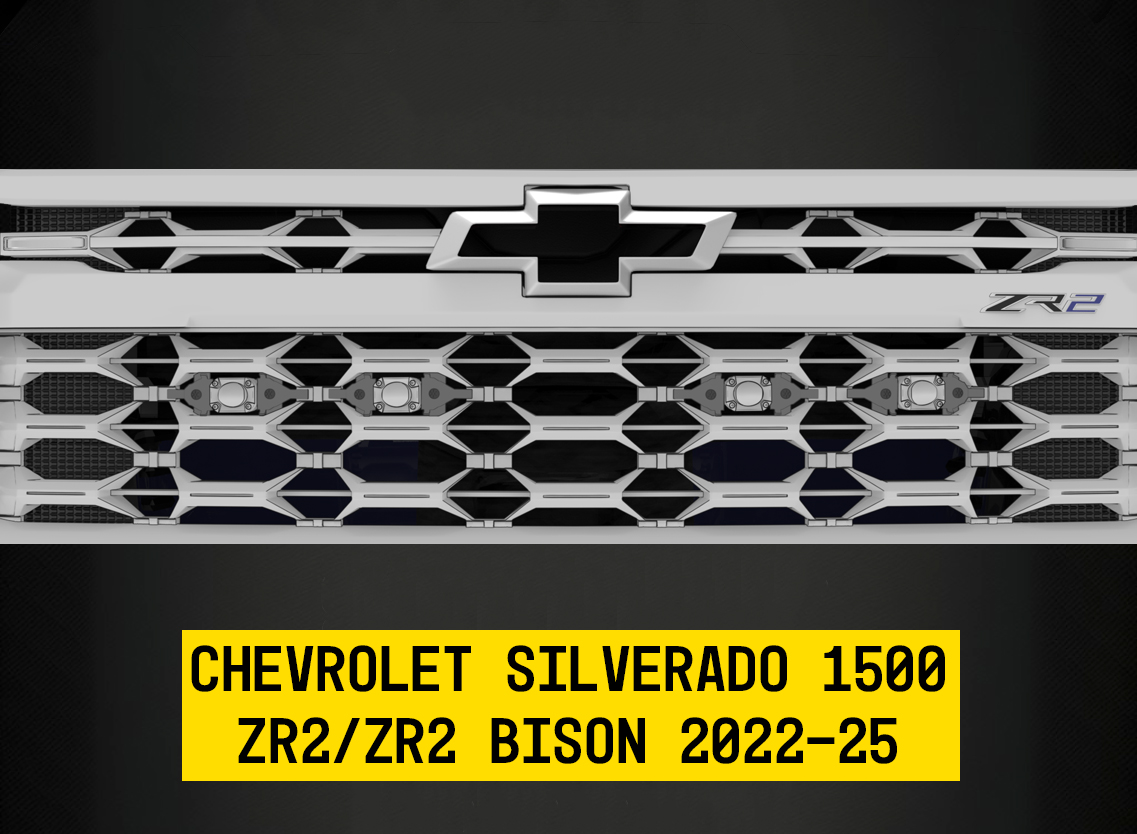 Tiny Monster Grille Kit for Chevrolet Silverado 1500 ZR2/ZR2 Bison, 2022-25 (4 Pods, Harness, Brackets)-42CB4