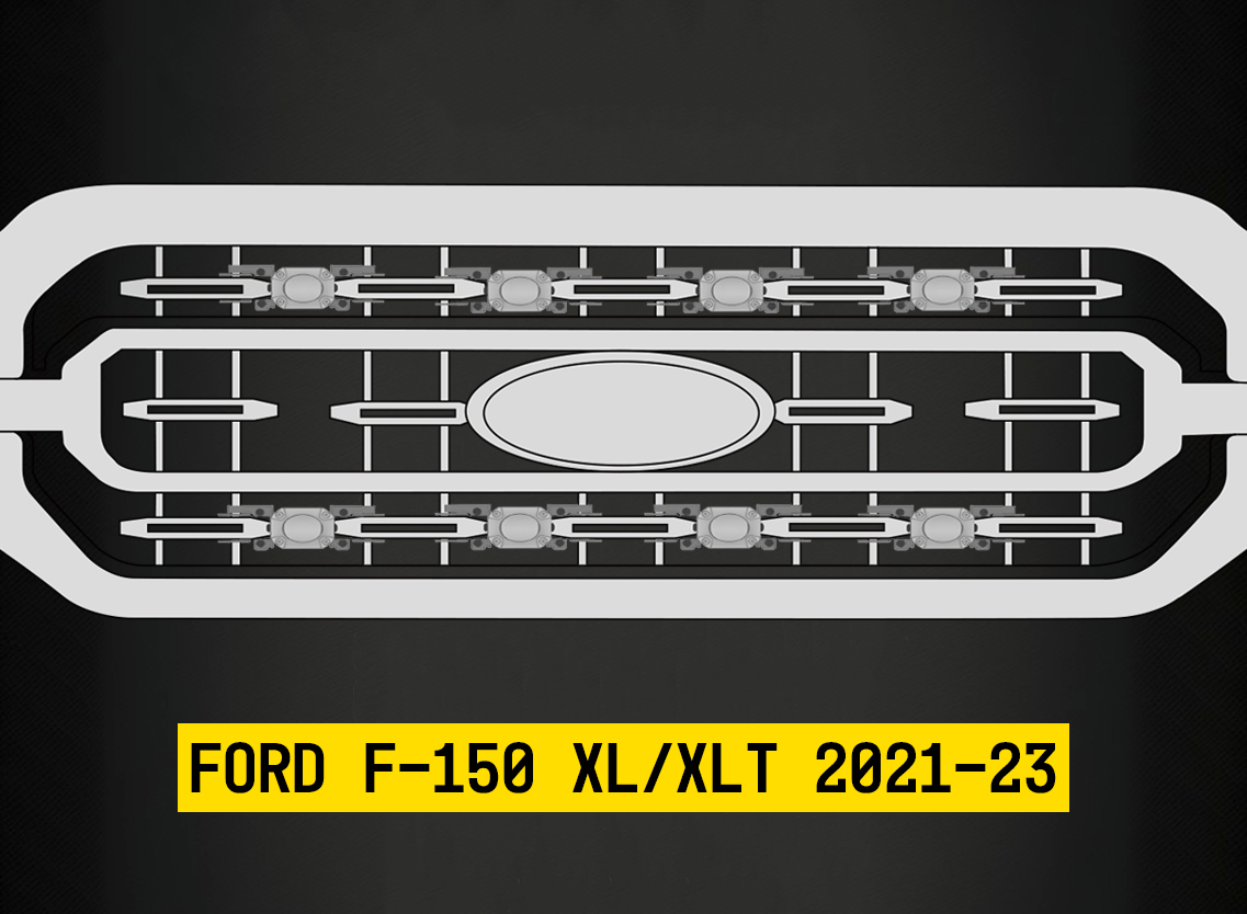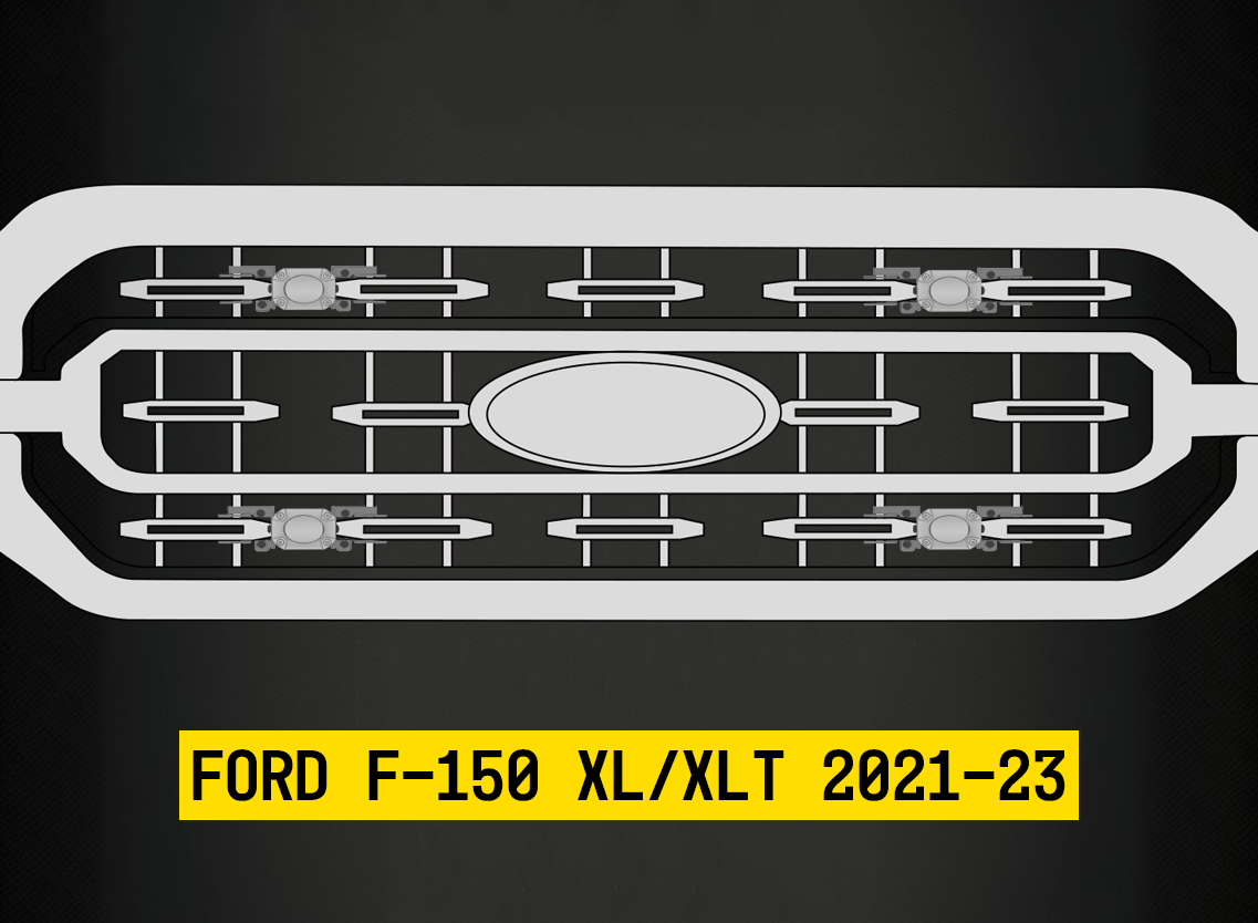 Tiny Monster Grille Kit for Ford F-150 XL/XLT, 2021-23 (4 Pods, Harness, Brackets)-42F14