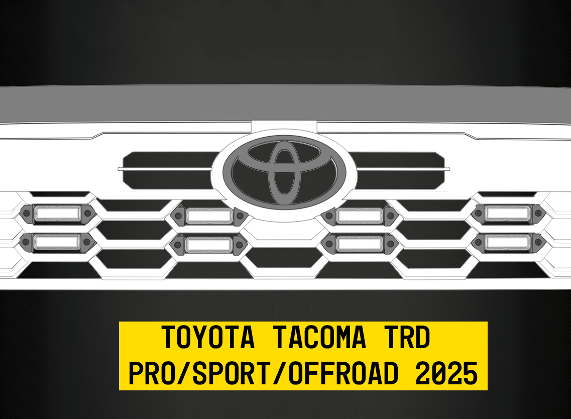 Tiny Monster Grille Kit for Toyota Tacoma TRD Pro/Sport/Offroad, 2025 (8 Pods, Harness, Brackets)-43TD8