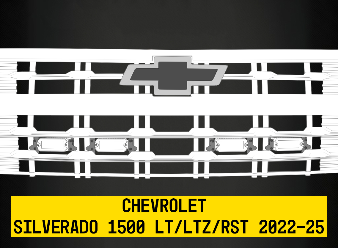 Tiny Monster Grille Kit for Chevrolet Silverado 1500 LT/LTZ/RST, 2022-25 (4 Light Bars, Harness, Brackets)-61CC4